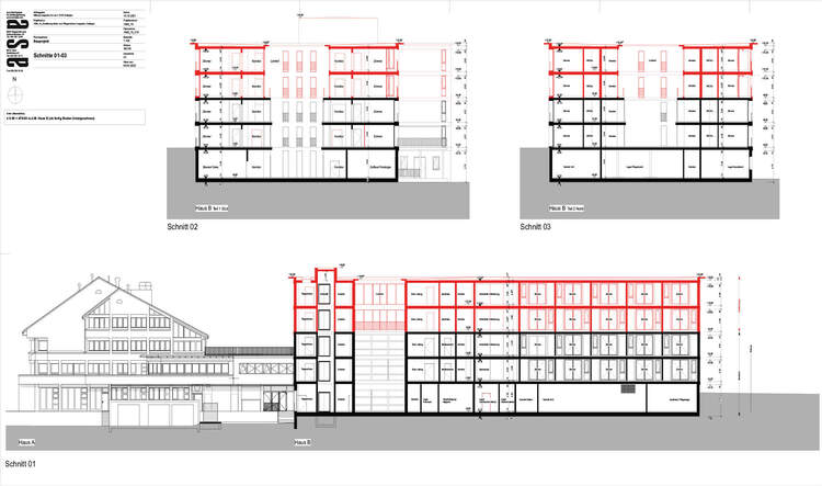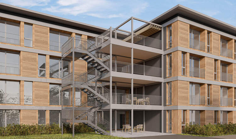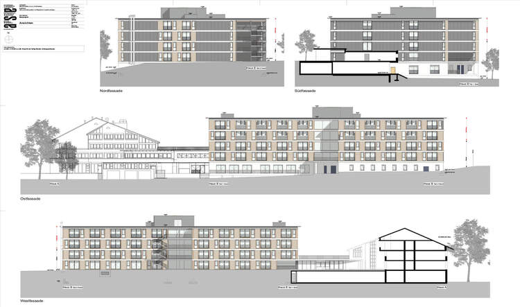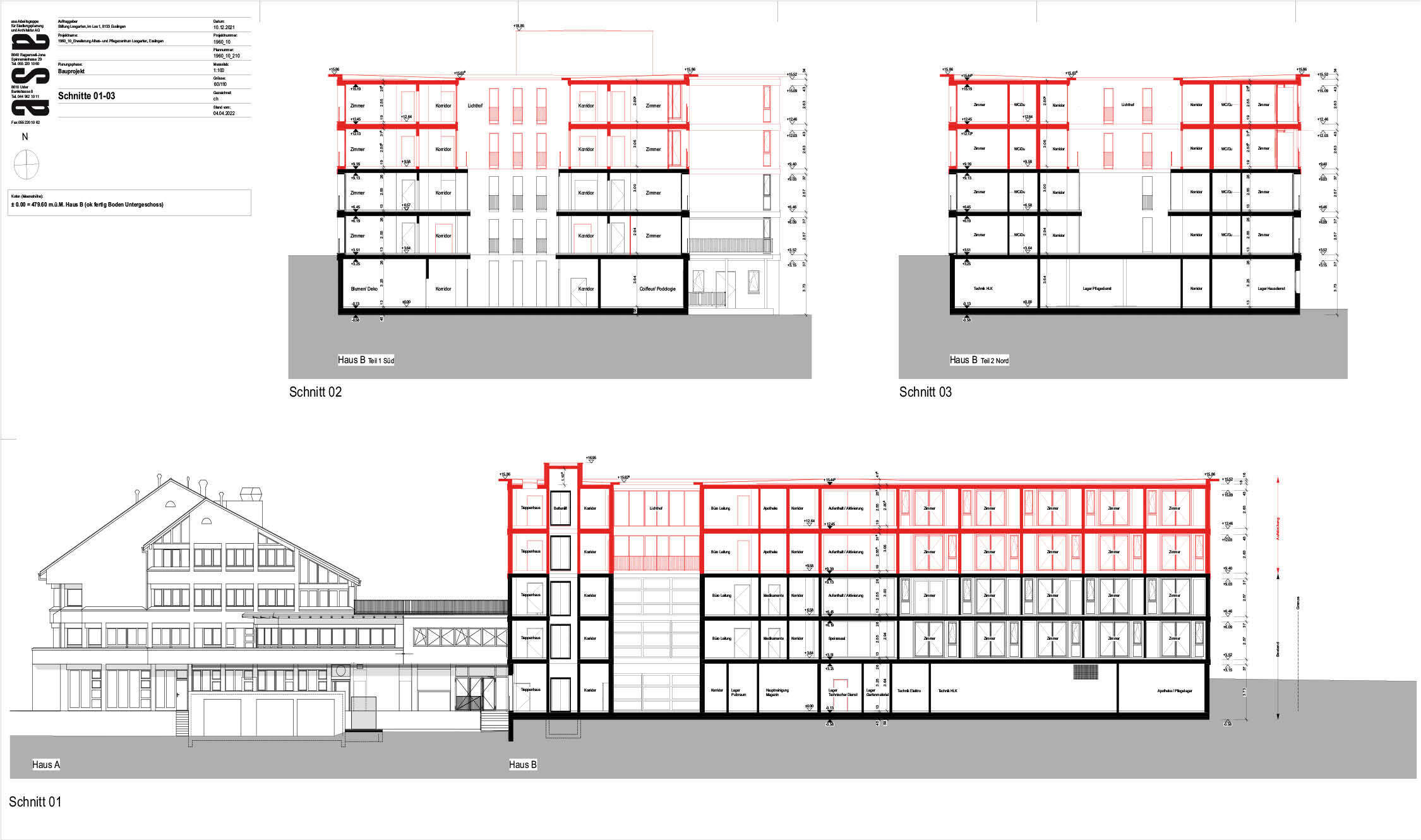 Eine mögliche Aufstockung der APZ wurde beim Bau des Hauses B bereits berücksichtigt. Allerdings wäre in Massivbauweise eine Erweiterung um nur ein Geschoss möglich gewesen, ohne den Bestand statisch zu verstärken. Der Entscheid, die neuen Geschosse in Holzbauweise, mit regionalem Holz zu bauen, war deshalb schnell gefällt.