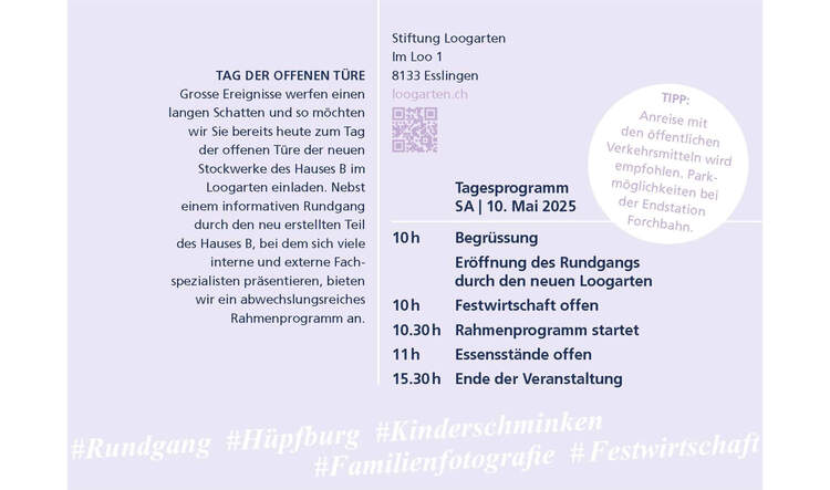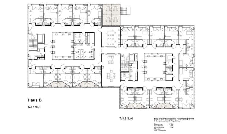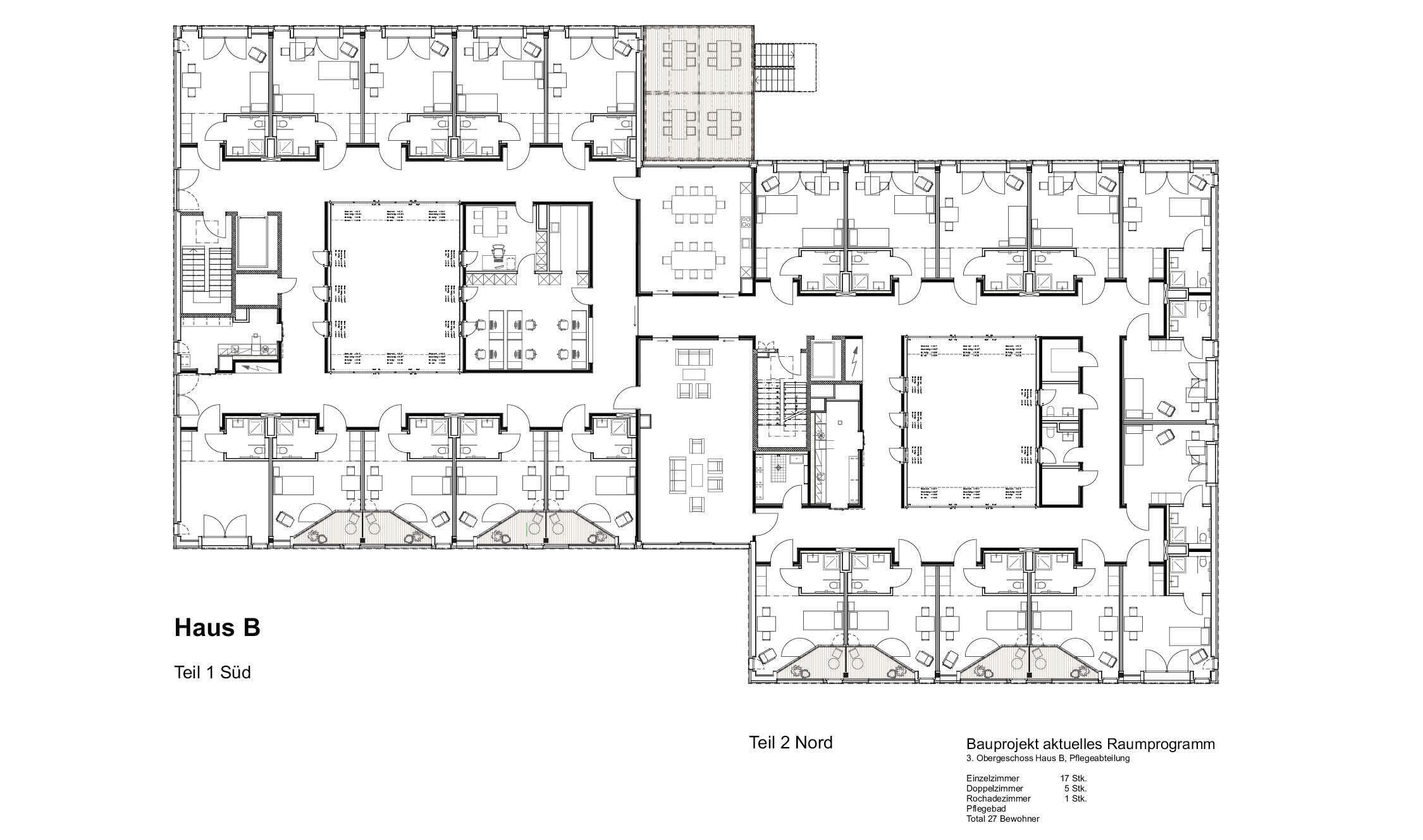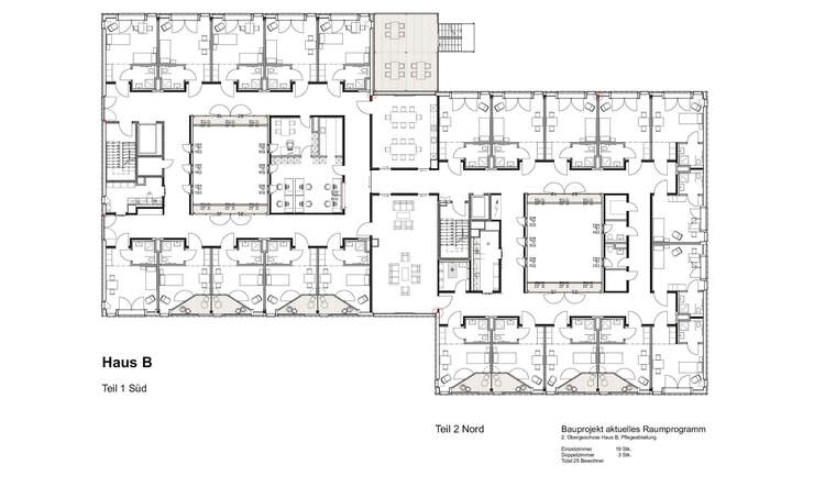 Nach dreijähriger Planungs- und Bauzeit ist die Aufstockung des APZ Loogarten abgeschlossen und die zwei neuen Geschosse konnten bezogen werden. Zurzeit werden in den bestehenden Geschossen noch kleinere Umbauarbeiten vorgenommen, danach ziehen auch die beiden Abteilungen aus Haus A ins Gebäude B um.