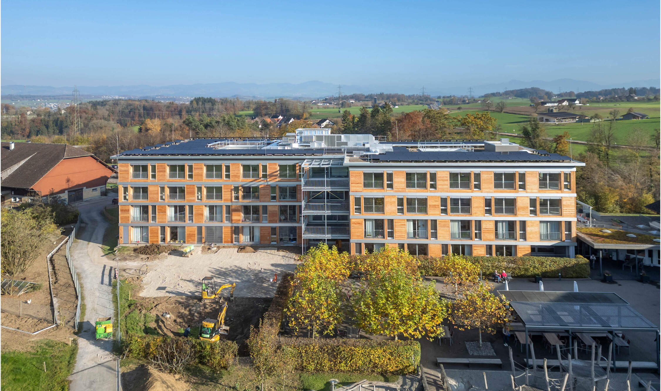 Für die Aufstockung wurden ca. 2000m3 Holz aus den Wäldern (Egg, Küsnacht, Herrliberg und Erlenbach) rund um den Pfannenstiel verbaut.