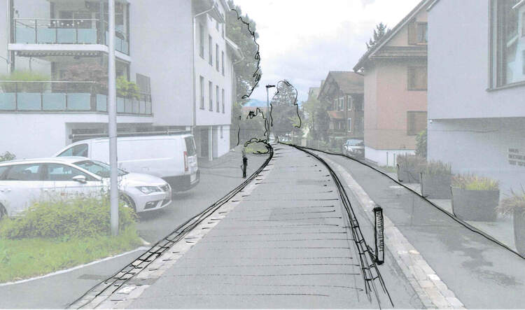 Die bestehende Infrastruktur stösst dabei zunehmend an ihre Grenzen: Die Fahrbahnbreite variiert zwischen 3.50 und 6.00 Metern, die Platzverhältnisse sind vielerorts eng. Fussgänger:innen und Velofahrende fühlen sich durch den motorisierten Verkehr gefährdet, eine durchgehende Infrastruktur für den Fussverkehr fehlt heute.